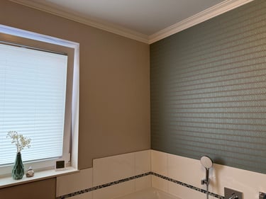 Individuelle Tapeten statt Fliesen - Mit speziellen, feuchtigkeitsbeständigen Tapeten schaffen wir im Badezimmer ein einzigartiges Ambiente.